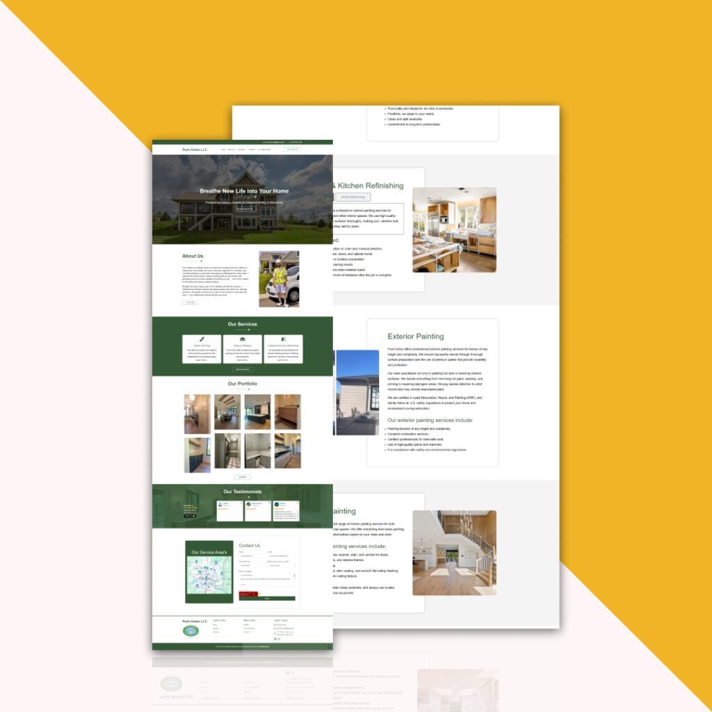 Pure Home is a service company offering painting, home improvement, and contact-estimate services to clients in Minnesota. The original website presented content but lacked strong clarity in messaging, visual hierarchy, and a conversion-focused user experience — all key areas that can significantly impact whether visitors reach out for estimates or leave the site without action.
